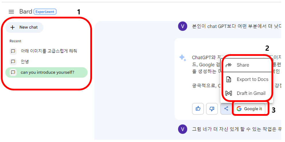 그렇다면, 바드에는 어떤 기능들이 있고 어떻게 활용할 수 있는지에 대해서 가장 기본적이면서도 우리가 많이 사용할 수 있는 부분 세 가지에 대해서 말씀드리겠습니다.