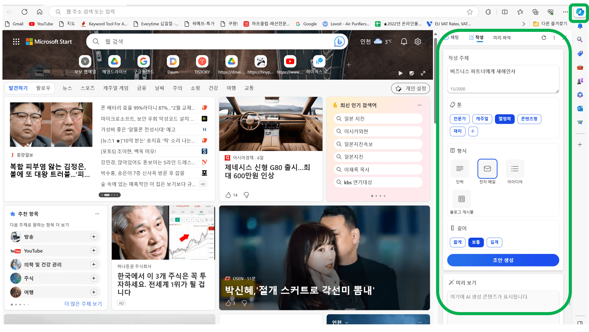 빙챗 사용하기 : 자동으로 이메일, 블로그 포스팅, 아이디어 작성하기