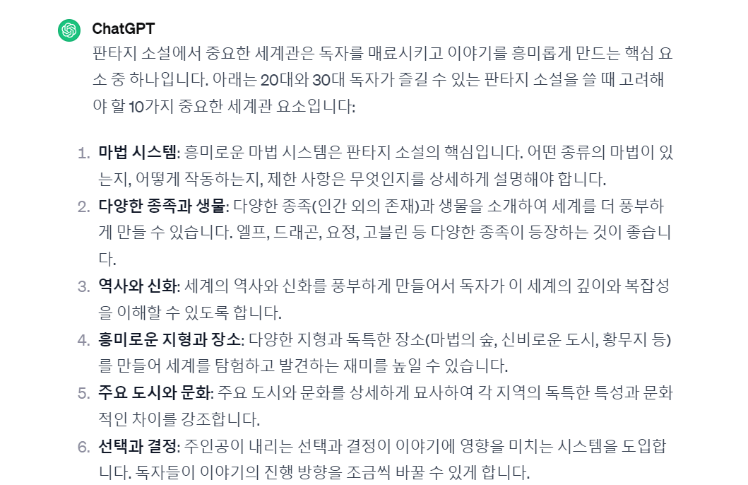챗GPT로 기술책 및 판타지 소설 작성 꿀팁 및 결론