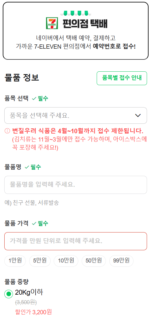 세븐일레븐 편의점 택배 온라인 예약 방법 및 가격