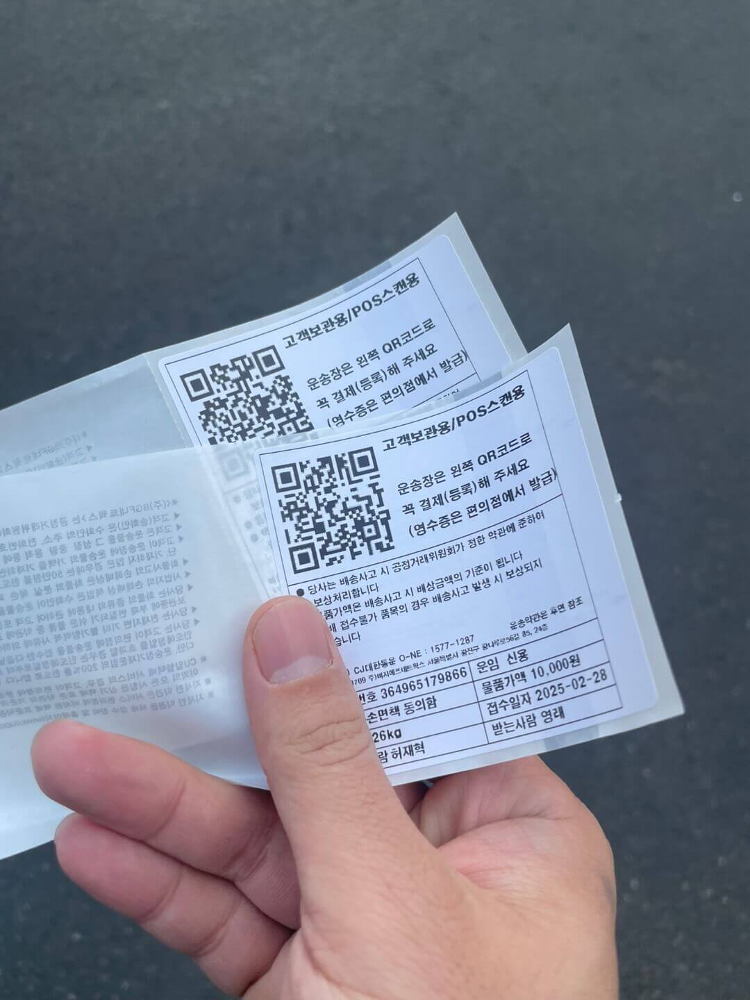 5. 짜잔, 드디어 마지막으로 고객 보관용 송장을 잘 챙겨서, 발송인 분에게 전달해 주시면 완료.