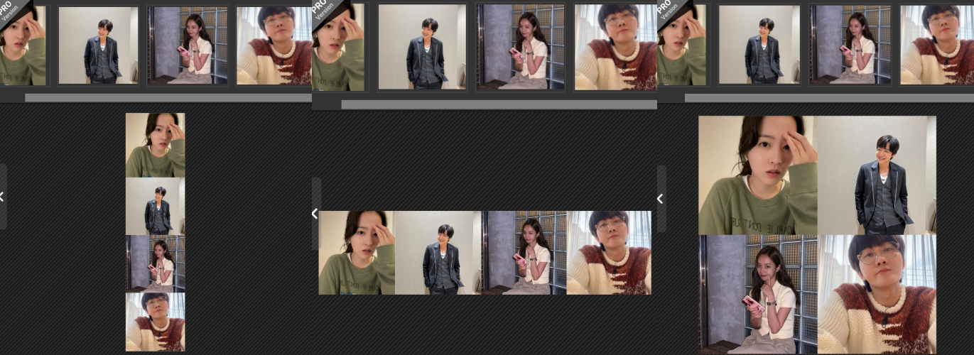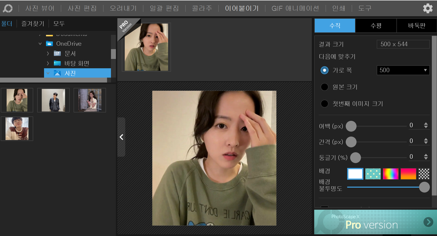 4개의 사진을 옮기는 것만으로도, 수평과 수직, 그리고 바둑판 세 가지를 무료로 제공해서 하나의 이미지로 만들어주는 기능까지 무료로 겸비하고 있습니다.